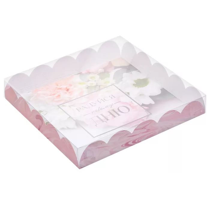 Коробка для кондитерских изделий с PVC-крышкой «Радуйся новому дню», 18*18*3 см. (2 шт.)