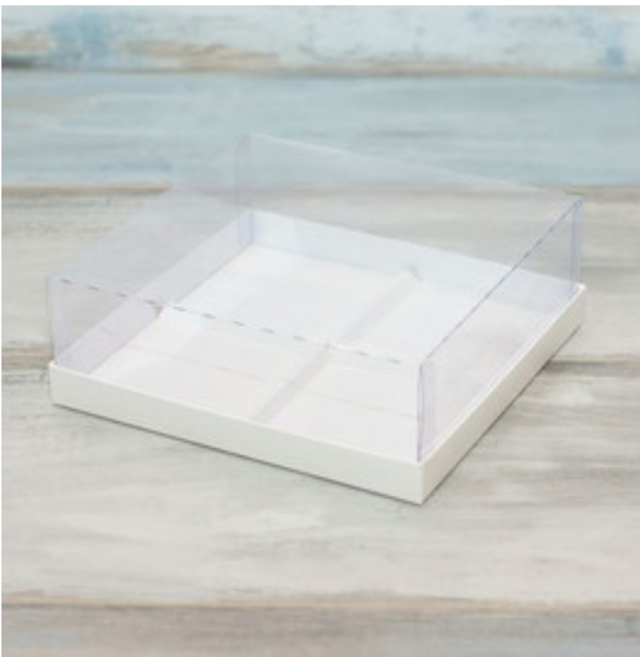 Коробка под муссовые пирожные (на 4 шт.) с пластиковой крышкой 170*170*60 мм. (белая) 3 шт.