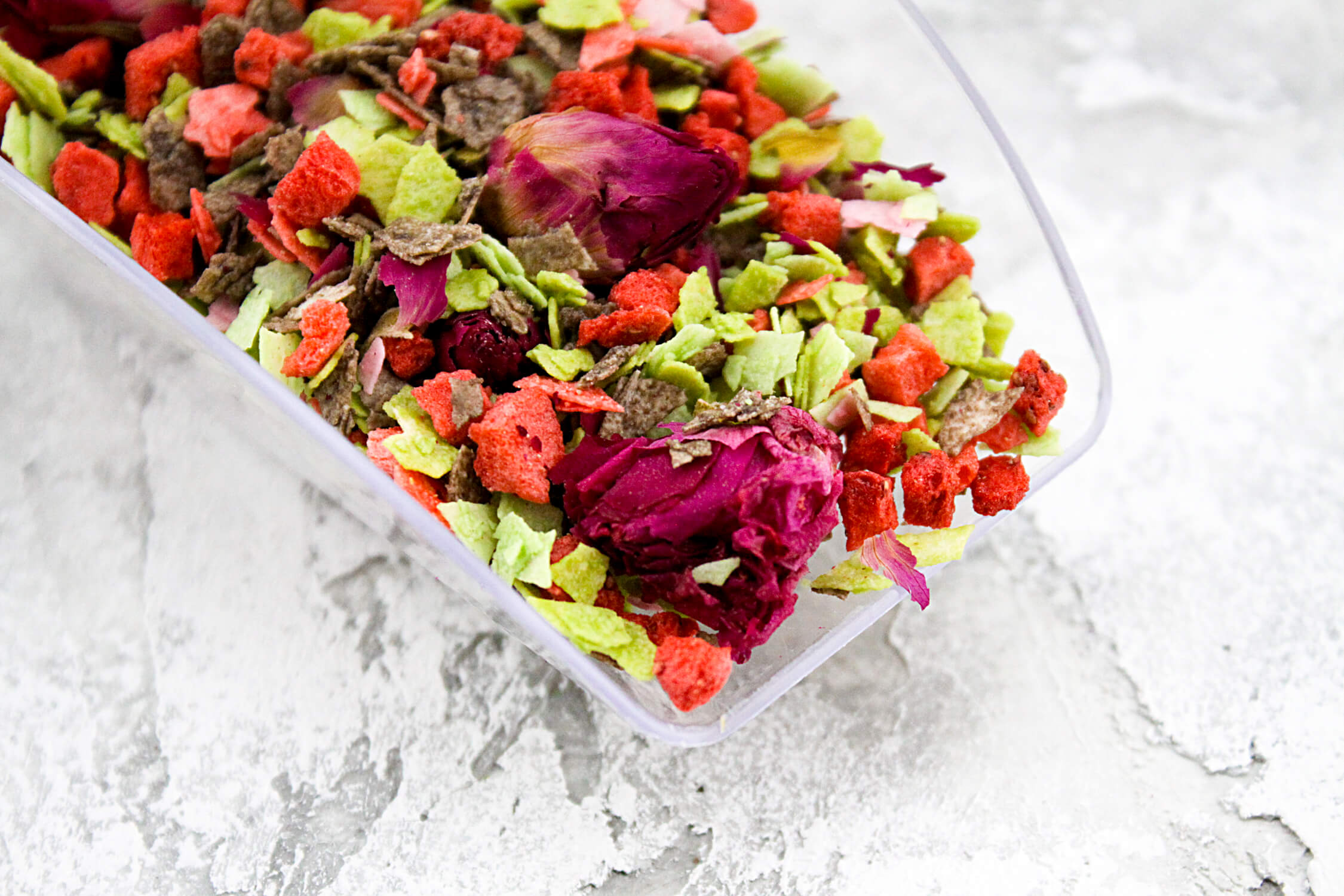 Полностью съедобный микс, в составе которого уникальные ингредиенты и цветы..